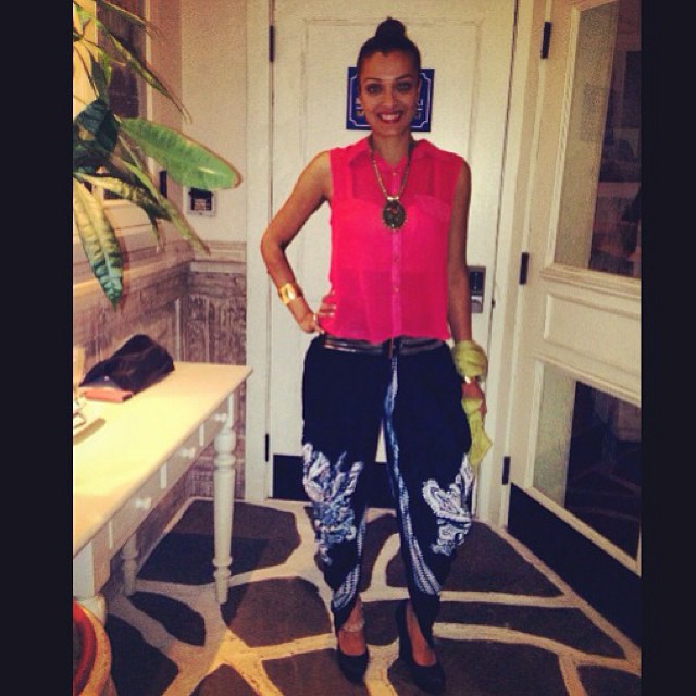 Publishing heir Lydia in this royal purple & rose crop top/full skirt combo is something I really loved. It’s playful but chic & perfect for one of Hollywood’s biggest afterparties.